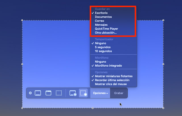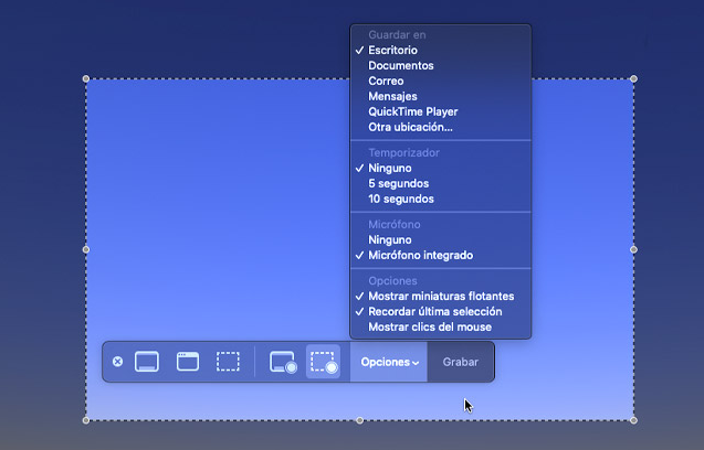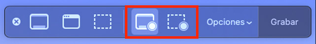 - Las dos opciones del medio, sirve para grabar en vídeo la pantalla del Mac.