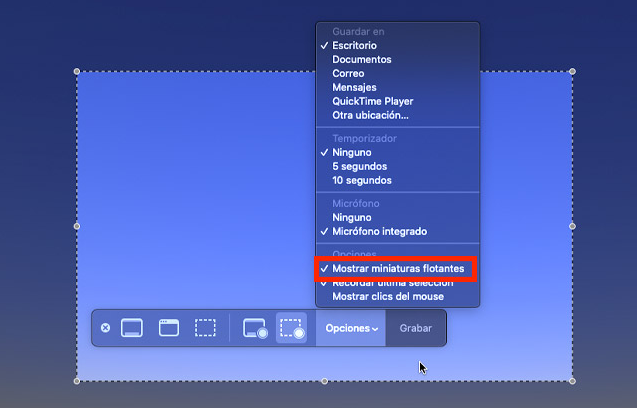 Mostrar miniatura flotante: elija si desea mostrar la miniatura.