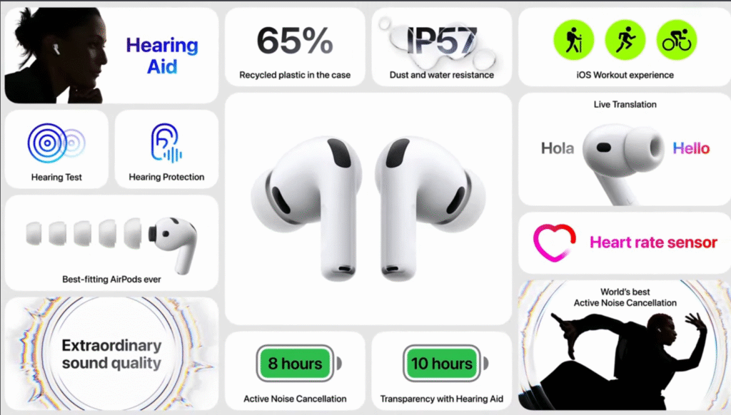 Los AirPods Pro 3 llegan para revolucionar el audio: mejor cancelación activa de ruido, traducción en tiempo real y la novedad de un sensor de ritmo cardíaco.