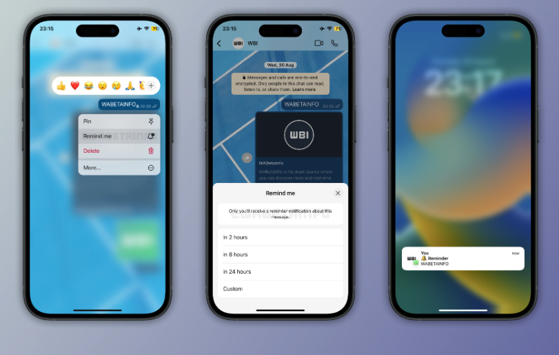 En una próxima versión, WhatsApp planea añadir una función que te permite crear recordatorios para mensajes específicos: tú decides cuándo quieres que te aparezca la alerta, con notificación visible, y sin tener que usar apps aparte.